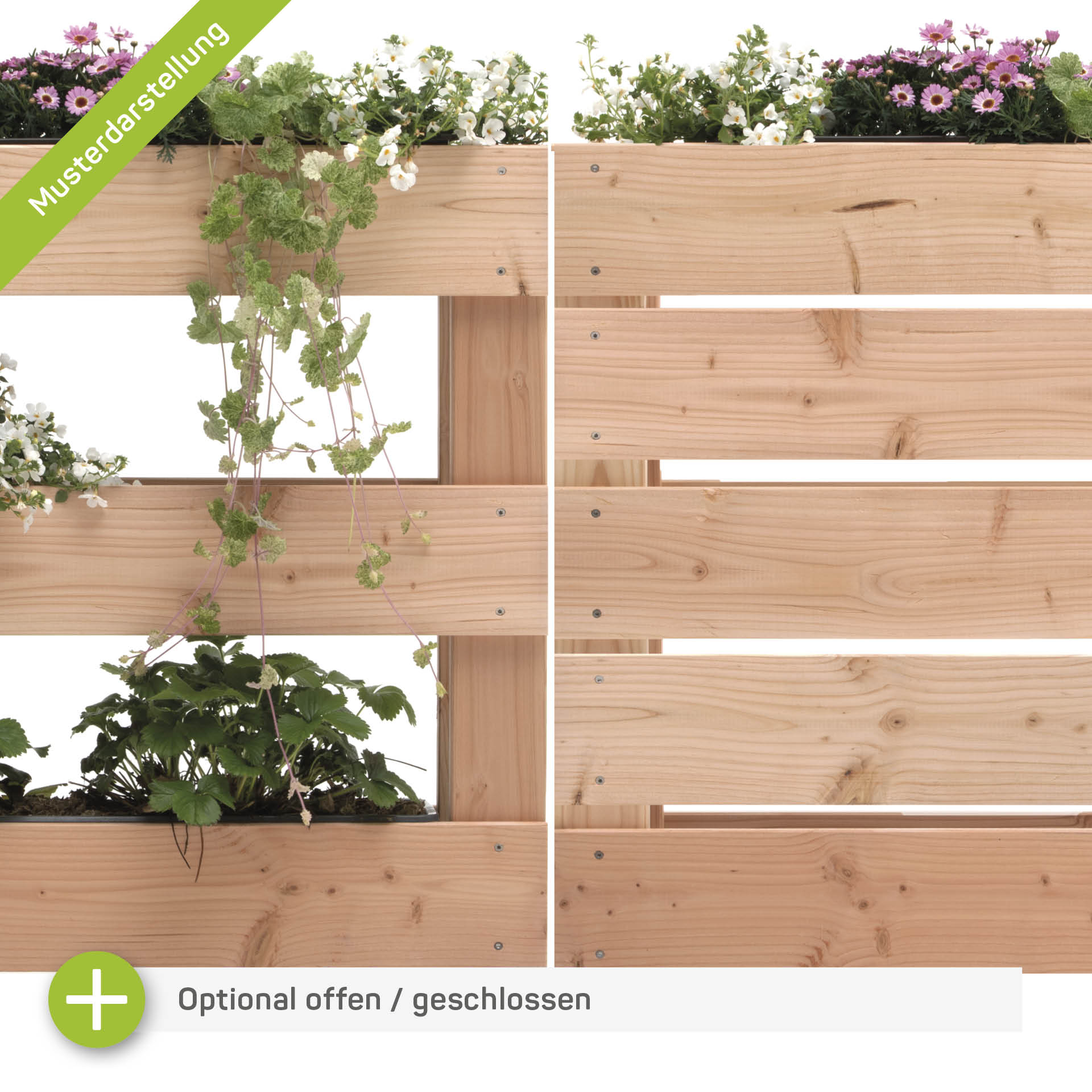 Erweitere die Pflanzecke jederzeit mit weiteren Pflanzmodulen und einem Verbinder Set (VG22K) in der Breite! Pro Pflanzmodul empfehlen wir zwei Fußstopfen unten in die Systemklötze einzuschlagen. Die Fußstopfen heben das Douglasienholz ca. 14 mm vom Boden ab. Alternativ stelle die Module auf Steine etc.
